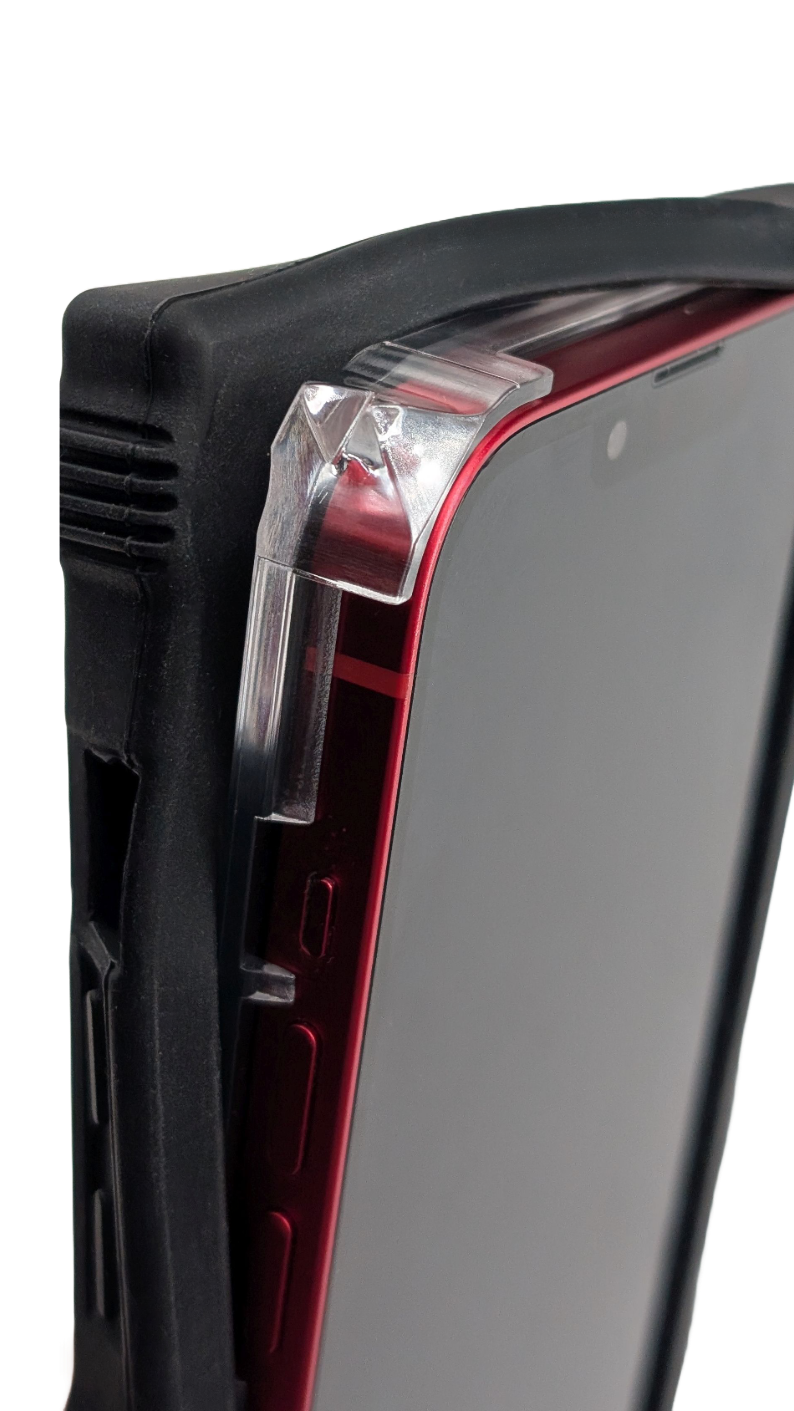 It looks like a premium phone case, but built into its design is a reinforced edge shaped to strike and create space fast—without drawing attention.